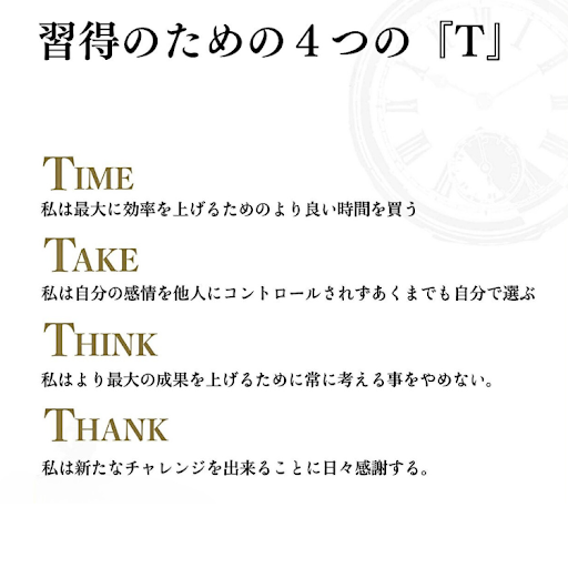 習得のための4つの『T』を自分のマインドに落とし込んでいきましょう。